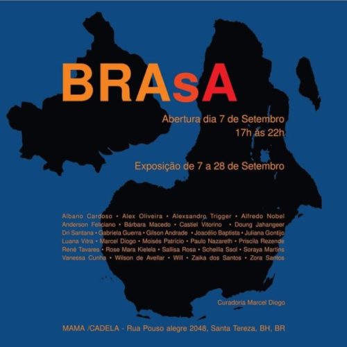 Abertura da exposição BRAsA, Brasil + África | 2019 📷 Vinicíus CirqueiraAbertura da exposição BRAsA, Brasil + África | 2019 📷 Vinicíus CirqueiraAbertura da exposição BRAsA, Brasil + África | 2019 📷 Vinicíus CirqueiraAbertura da exposição BRAsA, Brasil + África | 2019 📷 Vinicíus CirqueiraExposição BRAsA, Brasil + África | 2019Adriana Santana, série Minkisi, impressão digital sobre papel | 2019Adriana Santana, série Minkisi – Lembá, impressão digital sobre papel | 2019Albano Cardoso, fotografia, 29,7 x 42 cm | 2019Alfredo Nobel, Sem título, objetos, cimento e terracota | 2018/19Albano Cardoso e Alfredo Nobel, exposição BRAsA | 2019Alex Oliveira, Fotoperformance Popular, fotografia | 2019Alexsandro Trigger e Paulo Nazareth, exposição BRAsA | 2019Alexsandro Trigger, Paulo Nazareth, Albano Cardoso e Alfredo Nobel, exposição BRAsA | 2019Bárbara Macedo, exposição BRAsA | 2019Bárbara Macedo, Desenho Sudaca, série de Bajubás bordados sobre tecidos variados | 2019Bárbara Macedo, Desenho Sudaca 1, série de Bajubá bordado sobre tecidos variados | 2019Bárbara Macedo, Desenho Sudaca 2, série de Bajubá bordado sobre tecidos variados | 2019Bárbara Macedo, Desenho Sudaca 3, série de Bajubá bordado sobre tecidos variados | 2019Bárbara Macedo, Desenho Sudaca 4, série de Bajubá bordado sobre tecidos variados | 2019Bárbara Macedo, 2019 – 2022, bordado sobre tela | 2018Bárbara Macedo e René Tavares, exposição BRAsA | 2019Bárbara Macedo, Instruções para adentrar o hemisfério norte, serigrafia sobre tecido | 2018Bárbara Macedo, Instruções para adentrar o hemisfério norte, serigrafia sobre tecido | 2018Bárbara Macedo, Fardo, registro de performance, 08′:57” | 2018Bárbara Macedo, Fardo, registro de performance, 08′:57” | 2018Castiel Vitorino Brasileiro, Quando lembrei, voltei, vídeo, 3′:07” | 2019 Produção e montagem Castiel e Rucka de LacaiaCastiel Vitorino Brasileiro, Quando lembrei, voltei, vídeo, 3′:07” | 2019 Produção e montagem Castiel e Rucka de LacaiaAdriana Santana e Castiel Vitorino Brasileiro, exposição BRAsA | 2019Daniel Ducato, Bala perdida ou Herói, performance | 2019Daniel Ducato, Bala perdida ou Herói, performance | 2019Doung Jahangeer, Lespas Kreol, 06′:58” | 2019Doung Jahangeer, Lespas Kreol, 06′:58” | 2019Gilson Andrade, Despacho em bandeira, registro de performance, 06′:23” | 2017Gilson Andrade, Despacho em bandeira, registro de performance, 06′:23” | 2017Joacélio Batista, Sem título, tinta de tecido em tela | 2019Joacélio Batista e Wilson de Avellar, exposição BRAsA | 2019Joacélio Batista, Wilson de Avellar, Alexsandro Trigger e Alfredo Nobel, exposição BRAsA | 2019Juliana Gontijo, Braseiro, monotipia sobre papel | 2019Juliana Gontijo, Braseiro, monotipia sobre papel | 2019Luana Vitra, Objeto paisagem 3, madeira, concreto, tinta e prego | 2018Zaika dos Santos e Luana Vitra, exposição BRAsA | 2019Marcel Diogo, Fogo nos racista, pintura | 2019Marcel Diogo, Comida preta, performance | 2019 📷 Vinicíus CirqueiraPaulo Nazareth, Assolan e Bombril, serigrafia | 2019Paulo Nazareth, Assolan e Bombril, serigrafia | 2019Paulo Nazareth, Galinha d’Angola, vídeo, 17′:45” | 2017Paulo Nazareth, Galinha d’Angola, vídeo, 17′:45” | 2017Priscila Rezende, Como erguer baronatos, vídeo, 5′:53” | 2018, auxílio para captação e edição Ana CastelloPriscila Rezende, Como erguer baronatos, vídeo, 5′:53” | 2018, auxílio para captação e edição Ana CastelloRené Tavares, Ngola Contemporary, fotografia, 29,7 x 42 cm | 2019René Tavares e Will, exposição BRAsA | 2019René Tavares, Will e Joacélio Batista, exposição BRAsA | 2019Rose Mara Kielela, A margem da margem, vídeo, 7′:49” | 2017Rose Mara Kielela, A margem da margem, vídeo, 7′:49” | 2017Sallisa Rosa, Oca do Futuro, vídeo, 8′:58”, 2014 e 2017, com Tapixi GuajajaraSallisa Rosa, Oca do Futuro, vídeo, 8′:58”, 2014 e 2017, com Tapixi GuajajaraScheilla SSol, Crisálidas, vídeo, 15′:17” 2014, registro e edição Zi Reis.Scheilla SSol, Crisálidas, vídeo, 15′:17” 2014, registro e edição Zi Reis.Vanessa Cunha, Pela janela (dentro, fora) e série silêncio doméstico, Aquarela | 2014 e 2018Will, Propaganda é tudo, técnica mista | 2019Wilson de Avellar, Série Apêndice, técnica mista | 2019Zaika dos Santos, Fragmentos de um sincretismo, pintura sobre MDF | 2019Zaika dos Santos, Não toca a trança, Happening/Escultura | 2019Zaika dos Santos, Não toca a trança, Happening/Escultura | 2019Zaika dos Santos, Adinkras, Performance | 📷 Guilherme Xavier